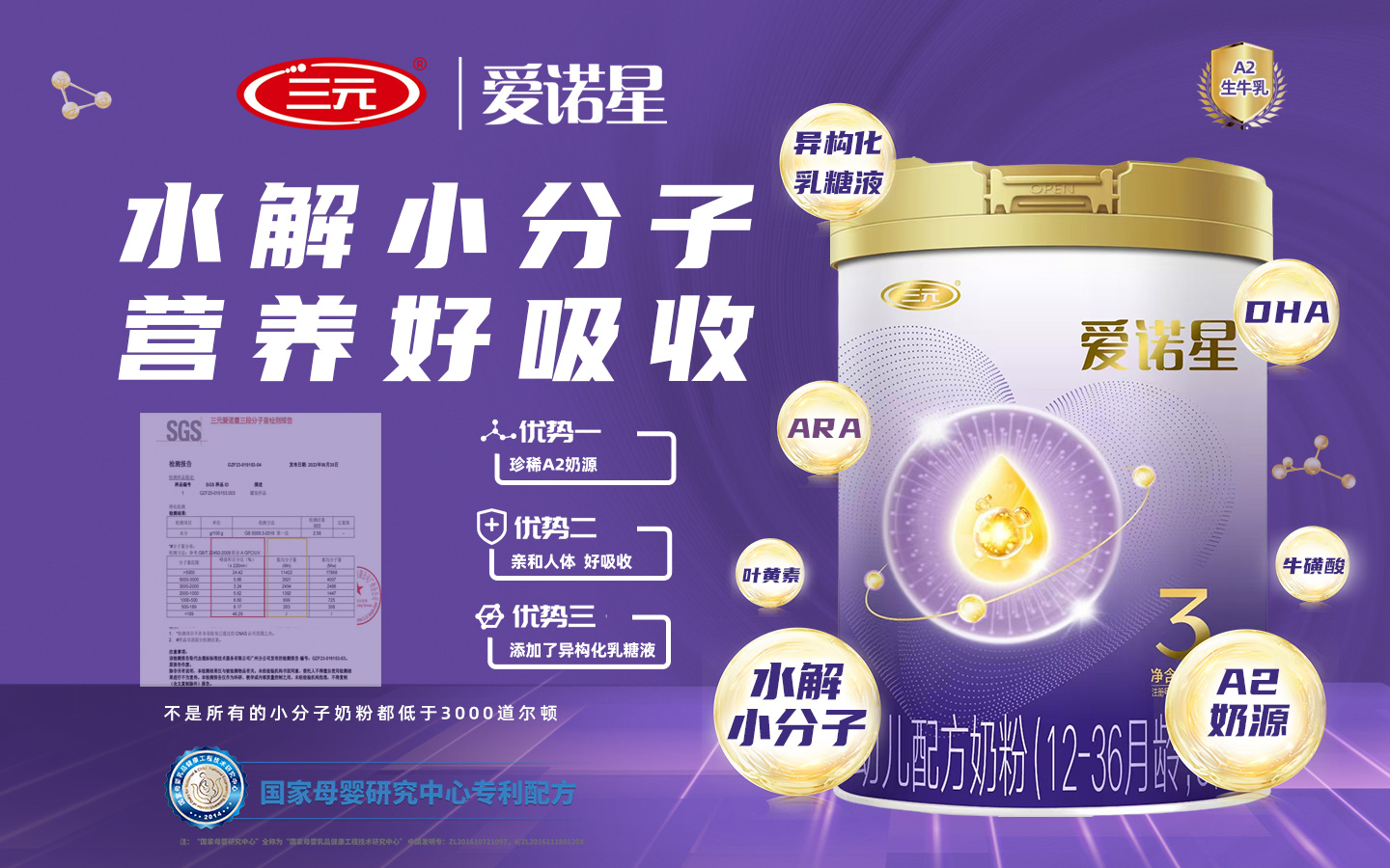 品牌名稱:三元愛(ài)諾星 主營(yíng)產(chǎn)品:三元愛(ài)諾星嬰幼兒配方奶粉 品牌特色:珍稀100%A2奶源 水解小分子 營(yíng)養(yǎng)好吸收