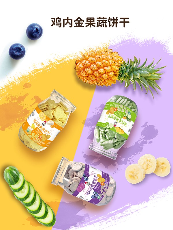 果蔬妃雞內(nèi)金果蔬餅干系列,有菠蘿青瓜味、藍(lán)莓紫薯味、香蕉玉米味,共三種口味,甄選優(yōu)質(zhì)原料,采用先進(jìn)工藝制作,加入雞內(nèi)金、果蔬等食材,特別添加海藻糖,健康美味有營養(yǎng)。