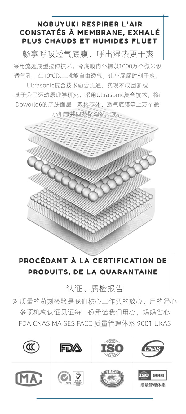 對(duì)質(zhì)量的苛刻檢驗(yàn)是我們核心工作。買的放心,用的舒心。(FDA CNAS MA SES FACC 質(zhì)量管理體系 9001 UKAS)多項(xiàng)機(jī)構(gòu)認(rèn)證見證每一份承諾我們用心,媽媽省心。