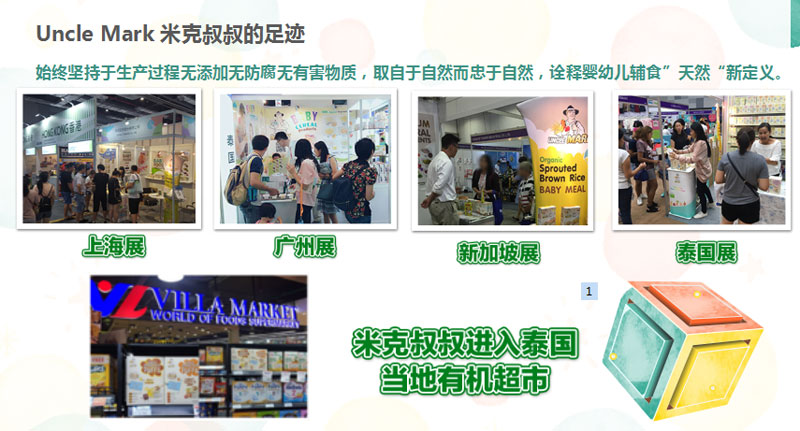 Uncle Mark米克叔叔品牌是鋐美(泰國)工業(yè)股份有限公司旗下產(chǎn)品,公司成立于1988年,是泰國政府批準(zhǔn)為BOI(投資促進(jìn)委員會)全外資食品工廠,獲得多項國際認(rèn)證和擁有先進(jìn)技術(shù)與設(shè)備,專業(yè)生產(chǎn)嬰幼兒輔食、即食粥、即溶谷粉以及健康休閑食品。