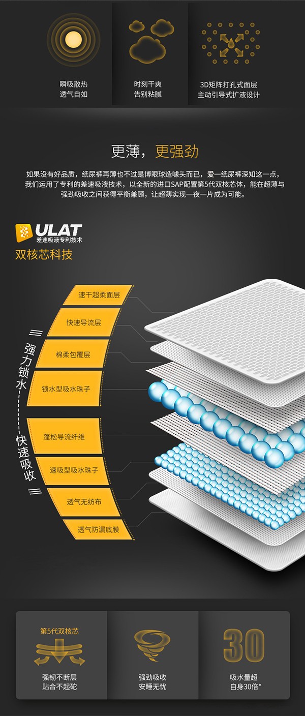 愛(ài)一倍柔纖薄嬰兒環(huán)腰褲,采用特級(jí)綿柔材料,加倍柔爽,純凈安全;新一代零觸感吸收芯體,快速吸收的同時(shí),緊鎖水份不反滲,確保纖薄透氣,讓寶寶安睡到天亮。