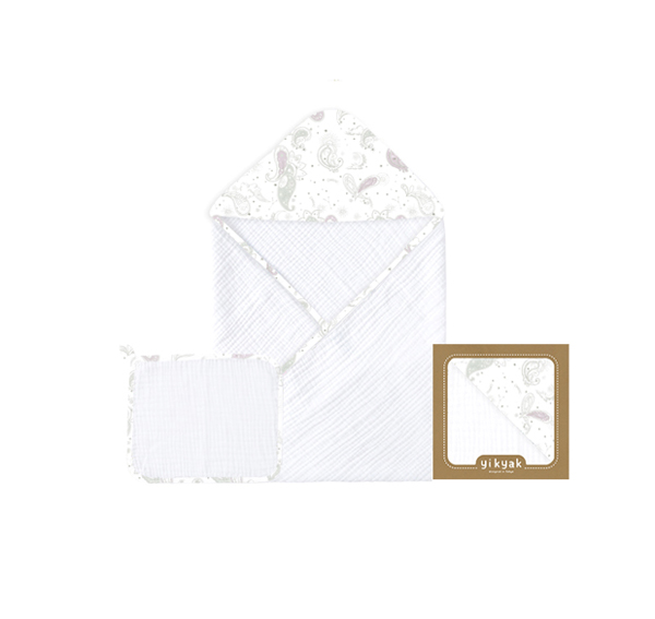 • yikyak一體密織紗布連帽浴巾 浪漫滿(mǎn)屋(綠紫)