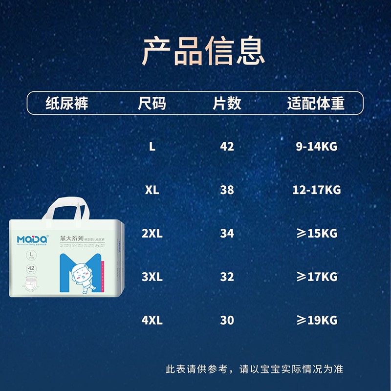 您所在位置:首頁>福建知本護理有限公司>MaDa芯大系列褲型嬰兒紙尿褲4XL30