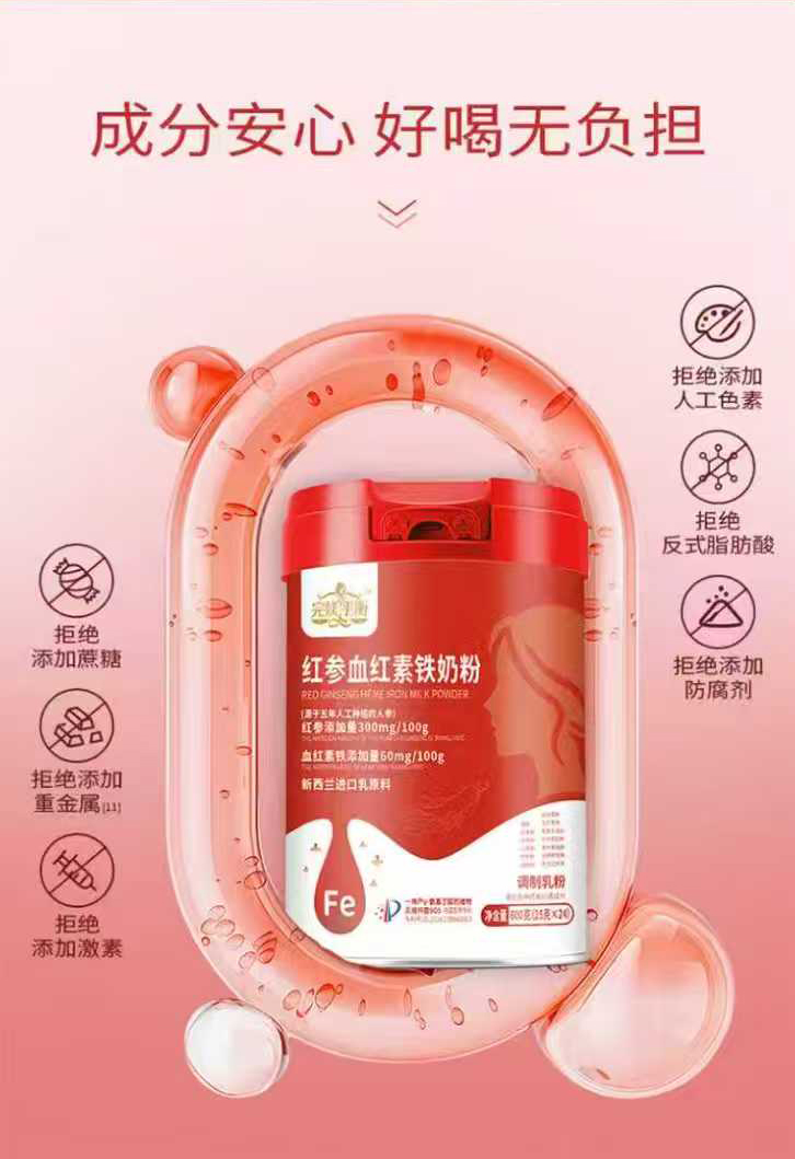 完媄平衡紅參血紅素鐵奶粉,精選新西蘭進口乳原料,每100g中紅參添加量300mg、血紅素鐵添加量60mg,同時添加了菊粉、紅參、大棗、山藥、枸杞、桂圓、蛹蟲草等藥食同源成分,搭配專利益生菌、血紅素鐵、膠原蛋白肽、針葉櫻桃粉、茶葉茶氨酸、透明質(zhì)酸鈉、雨生紅球藻,富含鈣鐵鋅硒及多種維生素,中西結合,溫和潤養(yǎng),賦能好氣色。拒絕添加蔗糖、香精、色素、防腐劑,成分安心,好喝無負擔。獨立小袋裝,營養(yǎng)更便攜。每天一杯,氣血充沛,吸收無憂。