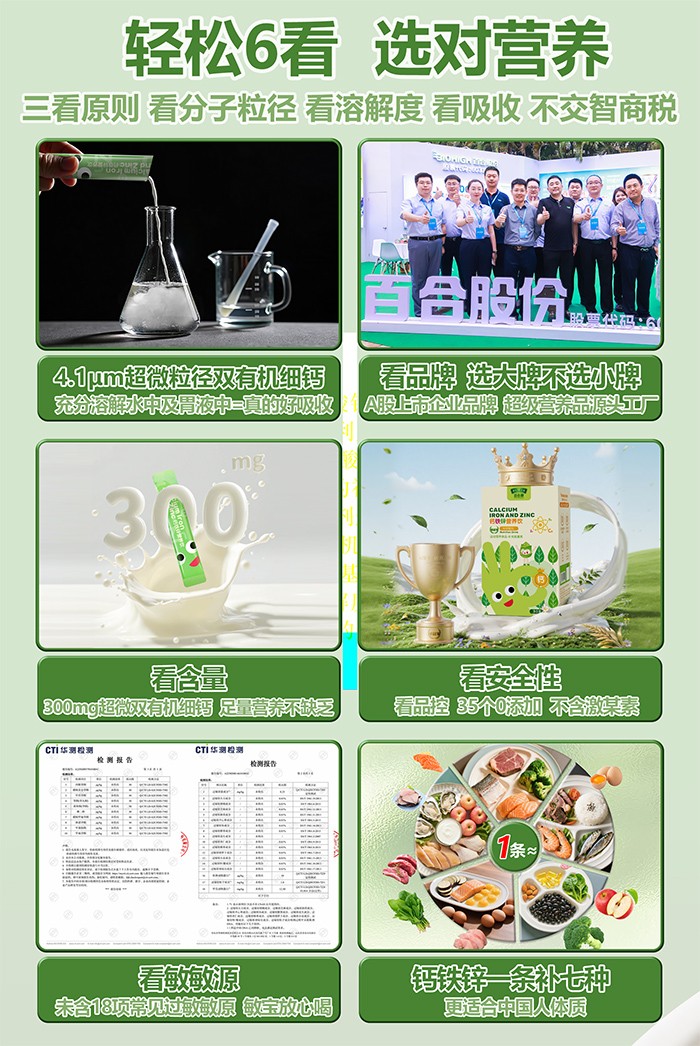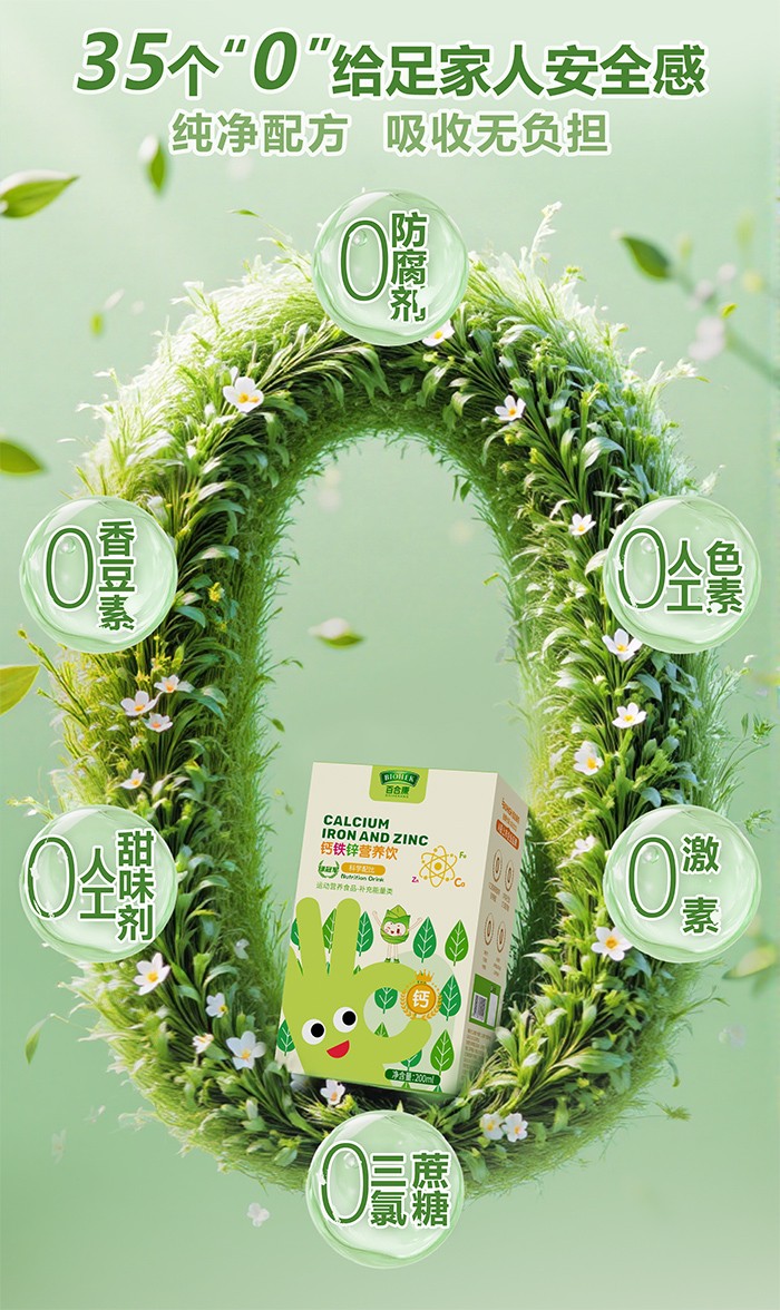 更值得一提的是,產(chǎn)品中特別添加了納豆成分,能自然帶來天然 K2(非化學(xué)合成 K2);同時(shí)融入 400IU 維生素 D3,為鈣的日常作用發(fā)揮提供助力。在成分安全性上,百合康綠冠軍鈣鐵鋅營養(yǎng)飲更是嚴(yán)格把控,實(shí)現(xiàn) 35 項(xiàng) 0 添加,不包含香精、甜味劑、色素與防腐劑,且在包裝上直接標(biāo)識 0 添加,讓家長能清晰看到產(chǎn)品的純凈用心。此外,產(chǎn)品不含 18 項(xiàng)常見過敏原,敏感體質(zhì)的孩子也能安心享用。