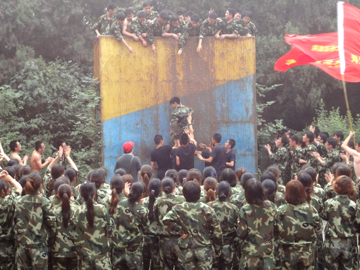 拓展訓(xùn)練中隊(duì)員勇攀畢業(yè)墻