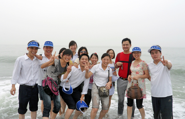 火爆網(wǎng)絡(luò)全體員工在燈塔前的合影留念